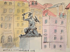 ![]() ワルシャワ旧市街広場の人魚像 ’19.4.2 |