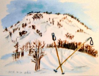 品倉山の肩まで登って満足し、ここで昼食にし た。遥かに鳥海山が望めた。品倉山頂上部を描 いてから、のんびり滑降した。 |