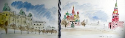 ![]() 赤の広場からの眺め 左はグム百貨店、中央は聖ワシリー寺院、右はスパスカヤ塔 2016.4.25 |